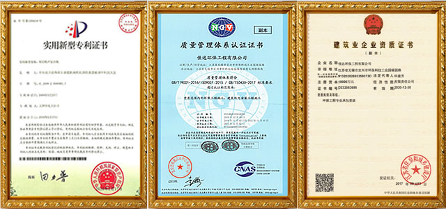 經過二十多年發展與積累,已取得環保工程專業承包壹級、建筑機電專業承包叁級、環境工程設計能力乙級、環境污染治理能力乙級、安全生產標準化三級等資格證書。